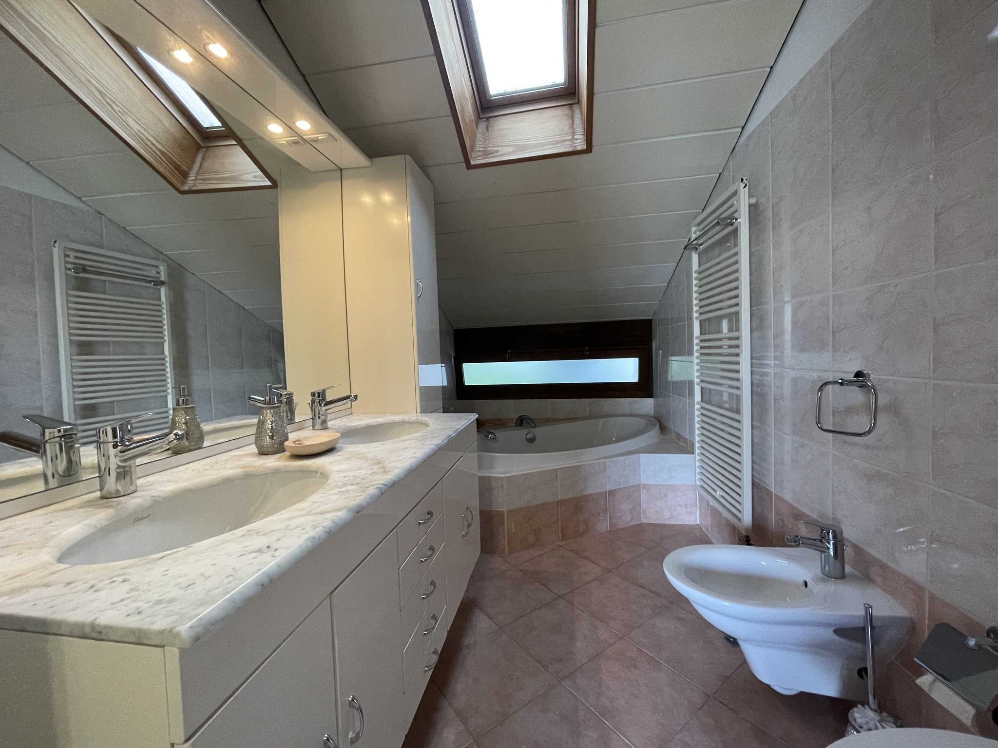 al piano superiore troviamo un angolo studio e la zona padronale composta da una grande camera matrimoniale con travi in legno a vista, bagno privato ensuite con vasca ed un terrazzo panoramico da cui poter godere di una vista lago mozzafiato, (mq lordi 52)